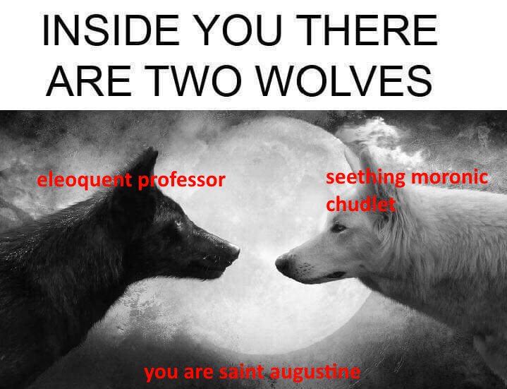 anyway the qted article talks about more than st augustine but he really was trapped between his eloquence, his understanding of sin and grace that came from leaving behind his old life to pursue God, and being a chud